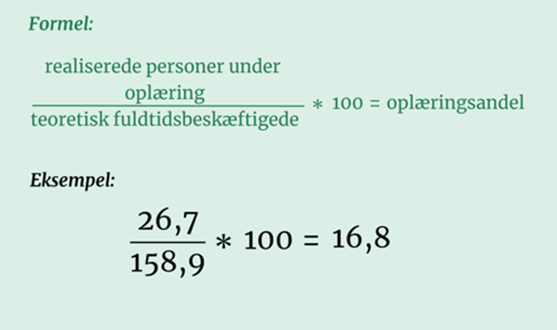 I lærlingeindberetningen udregnes byggesagens oplæringsandel på baggrund af den teoretiske beregning af antallet af fuldtidsbeskæftigede og det reelle antal årsværk for beskæftigede personer under oplæring i byggefasen.